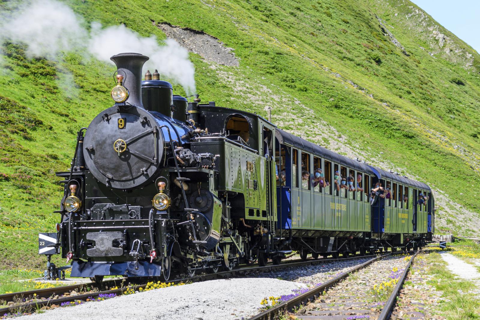 Nach dem Frühstück Spaziergang zum Bahnhof und faszinierende Bahnfahrt nach Oberwald. Hier beginnt Ihre Fahrt auf der berühmten Furka-Bergstrecke. Mit der Zahnrad-Bahn geht es steil hinauf in Richtung Gletsch, anschließend durch den Furka-Scheiteltunnel auf 2.160 m Höhe bis zur Station Furka. Danach geht die Fahrt ebenso steil wieder hinunter durch das wildromantische Tal der Furkareuss nach Realp. Weiterfahrt nach Chur und gemeinsamen Abendessen in einem außergewöhnlichen Restaurant in Chur.